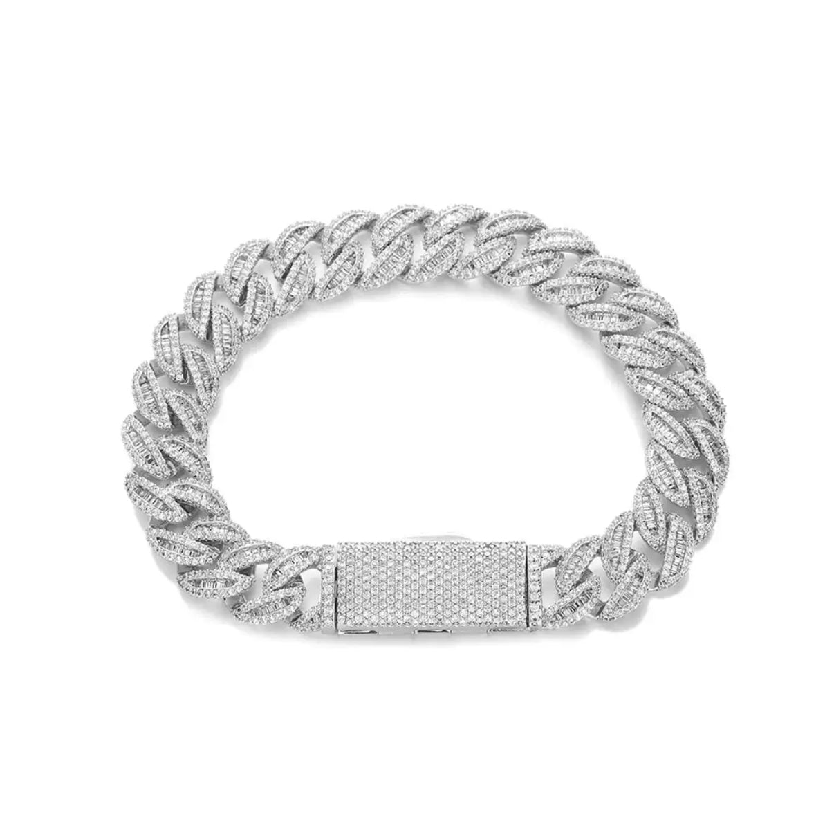 【15-20mm】Baguette Miami Cuban Chain Bracelet【Moissanite】