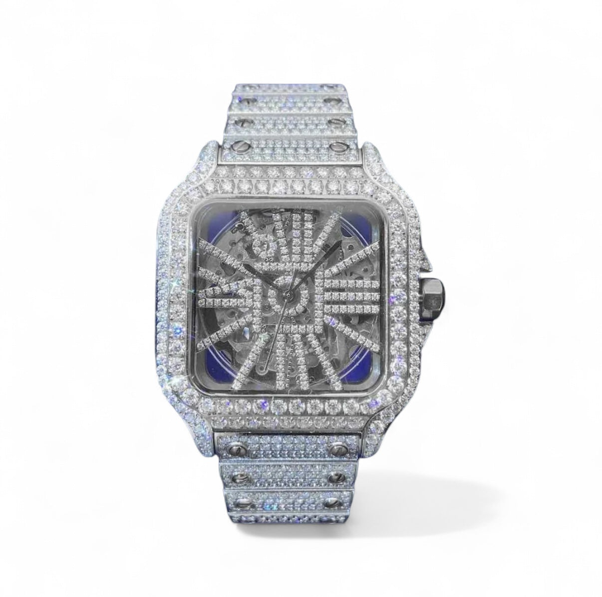 Custom Cartier Santos Skeleton Watch【Moissanite/SILVER】